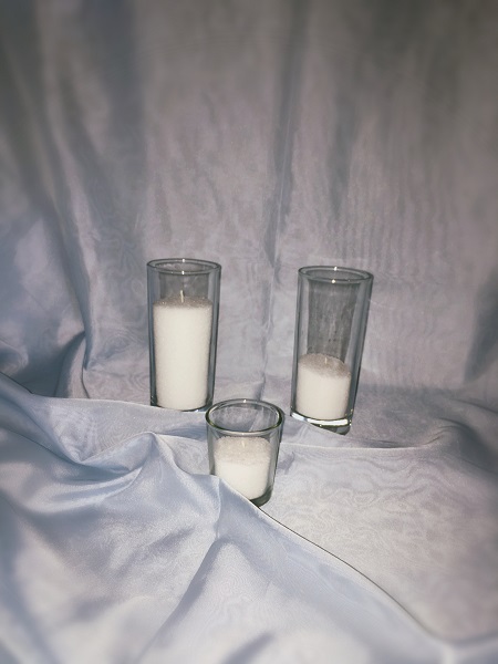 Цена насыпных свечей высотой 15 см. в зависимости от уровня наполнения воском: