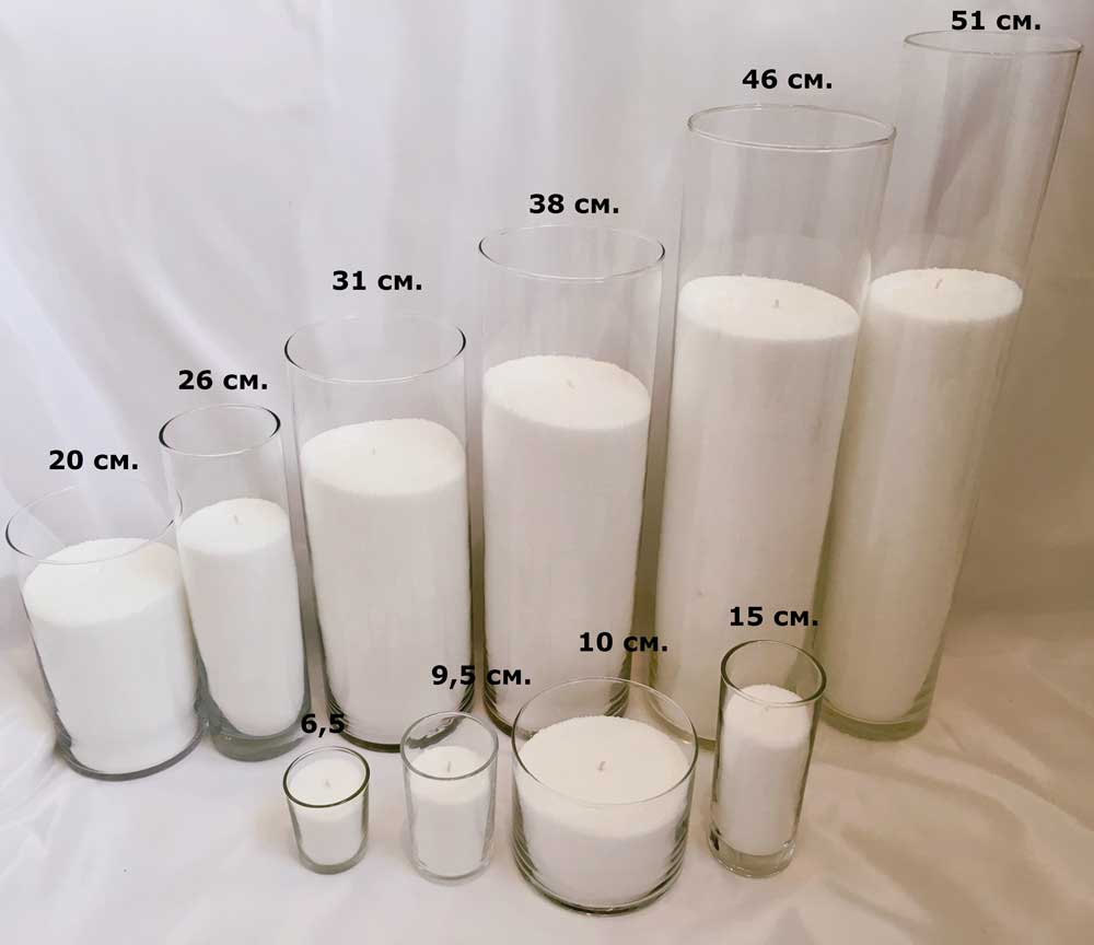 Цена насыпных свечей высотой 20 см. в зависимости от уровня наполнения воском: