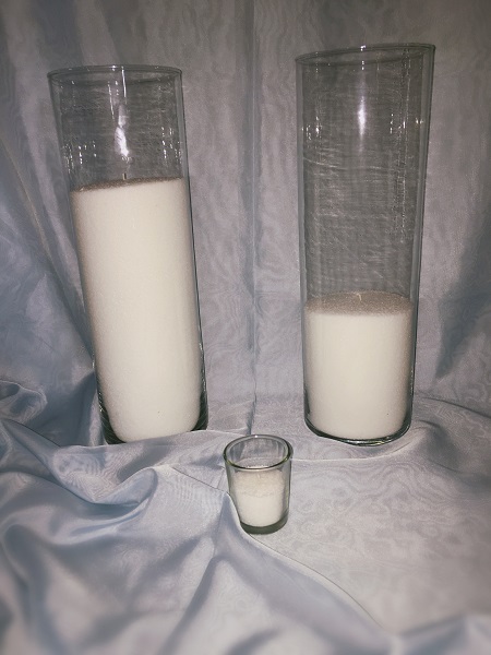 Цена насыпных свечей высотой 38 см. в зависимости от уровня наполнения воском: